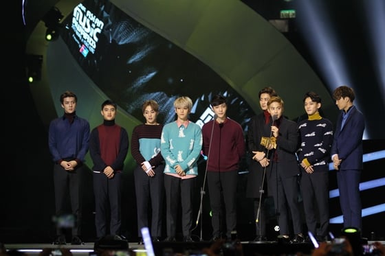이날 엑소 멤버 수호는 "저희는 지난해 여기서 '늘 만족하지 않는다'고 말을 했었다"며 "(오늘도) 만족하지 않는다. 내일을 생각하면서 열심히 하겠다"고 말했다.