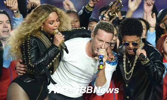 가수 비욘세, 브루노 마스, 콜드플레이가 '슈퍼볼' 하프타임쇼 무대에 올라 화끈한 무대를 선사했다.