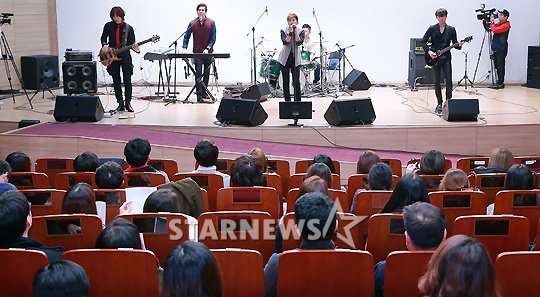 록밴드 넥스트와 가수 홍경민이 12일 오후 서울 영등포구 여의도동 국회의원회관 대회의실에서 진행된 의료법 개정 공청회 추진을 위한 라이브 콘서트에서 멋진 공연을 선보이고 있다.