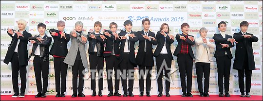 그룹 세븐틴이 17일 오후 서울 송파구 방이동 올림픽공원 올림픽홀에서 열린 '제5회 가온차트 K-POP 어워드' 레드카펫을 밟고 입장하고 있다.