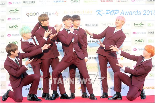 그룹 방탄소년단이 17일 오후 서울 송파구 방이동 올림픽공원 올림픽홀에서 열린 '제5회 가온차트 K-POP 어워드' 레드카펫을 밟고 입장하고 있다.