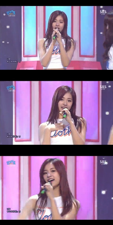 트와이스는 지난 13일 오후 방송된 SBS '인기가요'에 출연해 걸그룹 여자친구와 함께 소녀시대의 '지'(Gee) 무대를 꾸몄다.