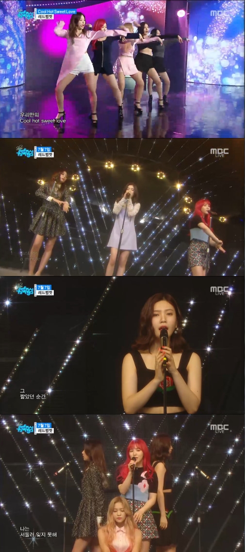 레드벨벳은 19일 오후 방송된 MBC '쇼! 음악중심'에서 '쿨 핫 스윗 러브(Cool Hot Sweet Love)' '7월 7일'로 무대를 꾸몄다.