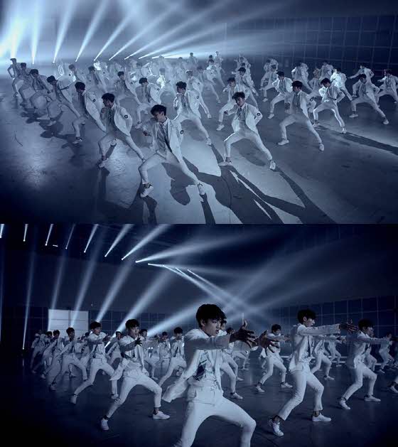뮤직비디오에서는 49명의 소년들이 노래에 맞춰 절도 있는 퍼포먼스를 선보였다. '라이징 스타'는 깔끔한 흰 수트에 민트색 타이로 포인트를 준 이들은 수많은 인원들이 자로 잰 듯한 칼군무와 박력 넘치는 카리스마로 시선을 끌고 있다. 여기에 귀여우면서도 발랄한 매력도 엿볼 수 있다는 후문. 앞서 많은 화제를 낳은 '프로듀스101' 못지않은 칼군무다.