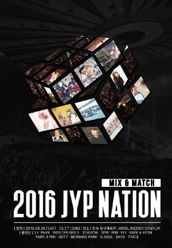 JYP엔터테인먼트는 12일 공식 SNS을 통해 오는 8월 6일과 8월 7일 서울 잠실 실내체육관에서 진행되는 JYP네이션 포스터를 공개하며 콘서트 제목을 '믹스 앤 매치'(MIX & MATCH)로 확정했다.
