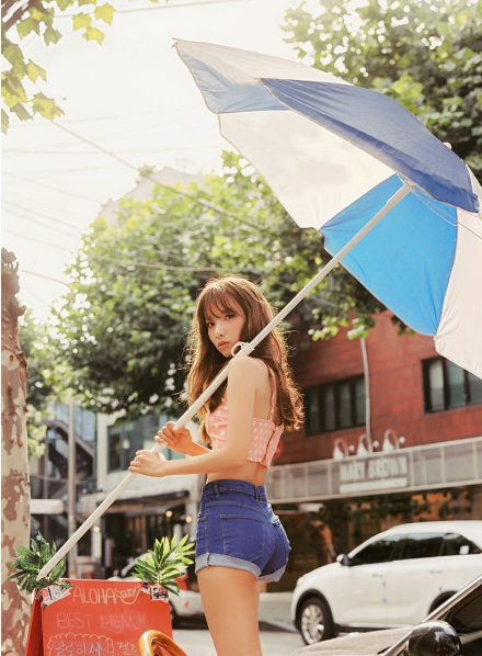 그녀는 파라솔을 어깨에 맨 채 매력적인 모습을 뽐내며 "9월의 시작, 우리 화이팅 합시당!" 라는 말로 팬들을 응원했다.