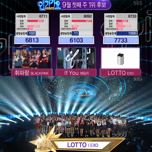 엑소는 이날 방송에 출연하지 않았다. 엑소는 방송 출연 없이도 '인기가요'에서 또 한 번 정상을 거머쥐며 독보적인 인기를 재확인시켰다.