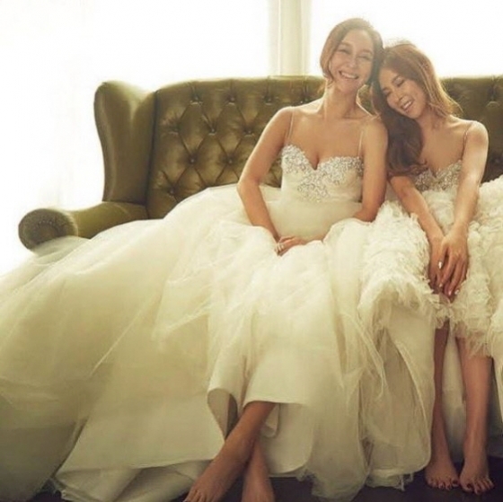 공개된 사진 속에서 김지현은 웨딩드레스를 입고 신랑과 마주 보며 환하게 웃고 있다. 또 다른 사진에는 함께 결혼 소식을 알린 룰라 동료 채리나와 웨딩드레스를 입고 머리를 맞대 눈길을 끈다.
