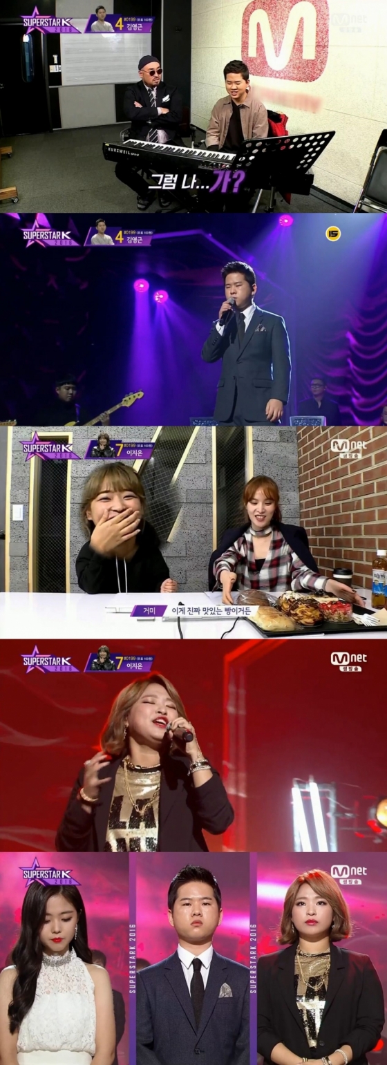 24일 방송된 Mnet '슈퍼스타K 2016'에서는 TOP4에 올라갈 후보 4명이 선정됐다. 김영근과 이지은은 공동 1위를 기록했다.