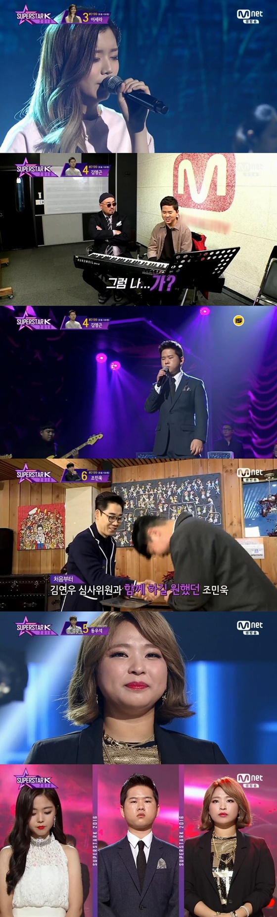 지난 24일 오후 방송된 Mnet '슈퍼스타K 2016' 첫 생방송에서 7명의 후보가 갈고 닦은 실력을 선보였다. 현장의 감동이 시청자들에게 가감 없이 전달됐다.