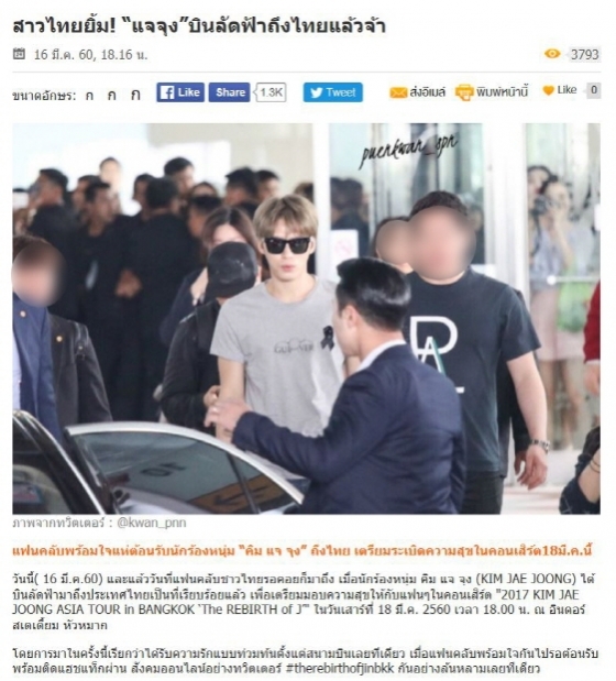 17일 소속사 씨제스엔터테인먼트에 따르면 김재중은 16일 아시아투어 ‘2017 KIM JAEJOONG ASIATOUR ‘The REBIRTH of J’’ 공연을 위해 방콕 수완나폼 공항에 도착했다. 공항에는 그를 환영하는 팬들로 인산인해를 이뤘다.