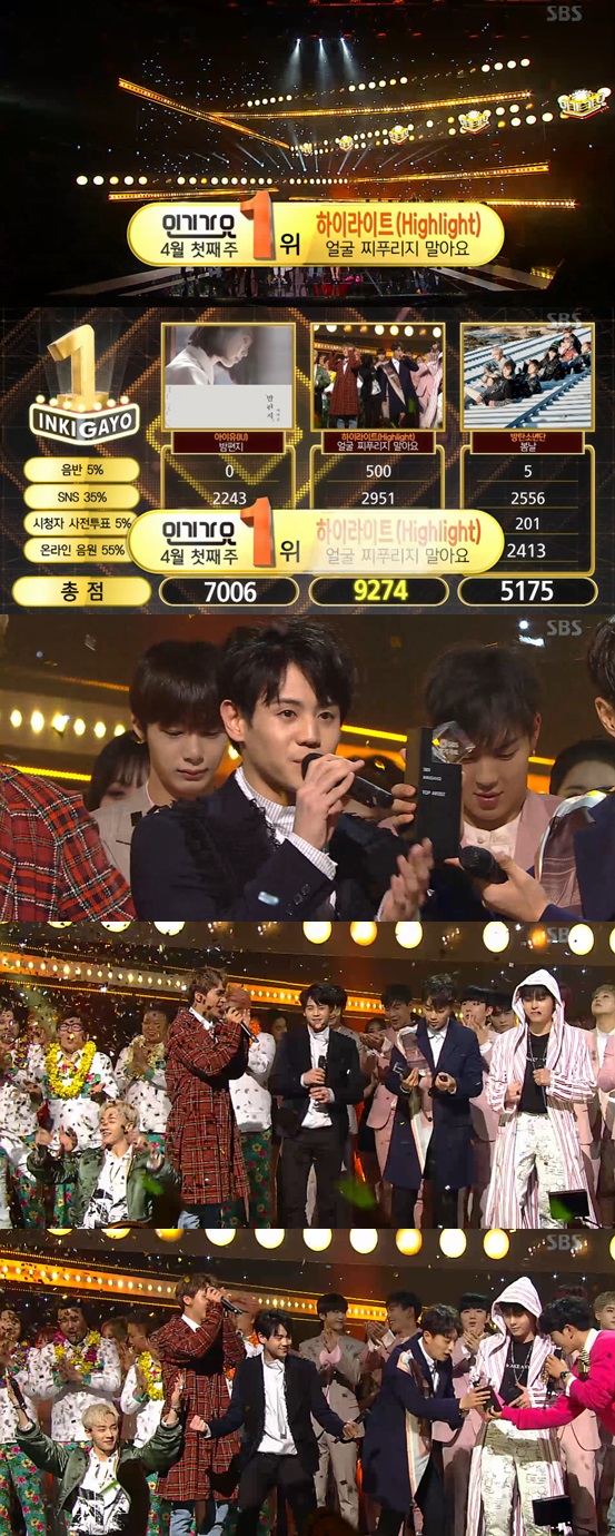 하이라이트는 2일 오후 방송된 SBS 음악순위프로그램 '인기가요'에서 1위를 차지했다. 하이라이트는 이날 함께 후보로 오는 아이유, 방탄소년단을 제치고 1위에 올랐다.