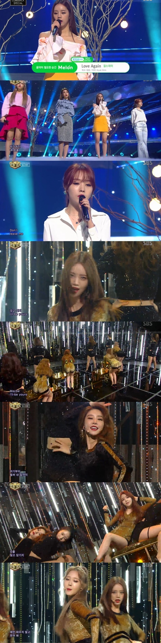 걸스데이는 이날 무대에서 컴백무대를 선사하며 눈길을 끌었다. 걸스데이는 먼저 '러브 어게인'을 선보였고, 이어 'I'll be yours'로 강렬한 무대를 꾸몄다.