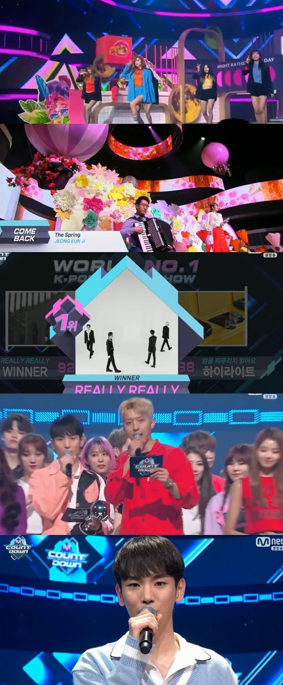 그룹 위너가 '엠카운트다운'에서 1위를 차지했다.