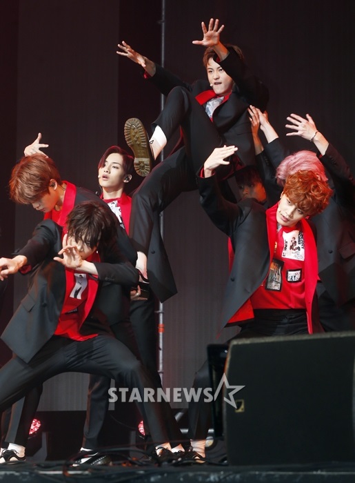 NCT127은 14일 오후 1시 서울 광장동 예스24 라이브홀에서 세 번째 미니앨범 'NCT #127 CHERRY BOMB’(엔시티 #127 체리 밤)' 쇼케이스를 열었다.