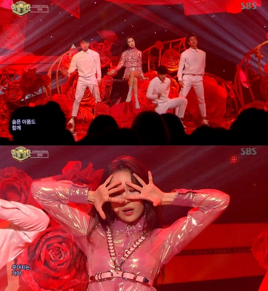 선미는 27일 오후 방송된 SBS 가요 순위 프로그램 '인기가요'에서 컴백 무대를 선보였다.