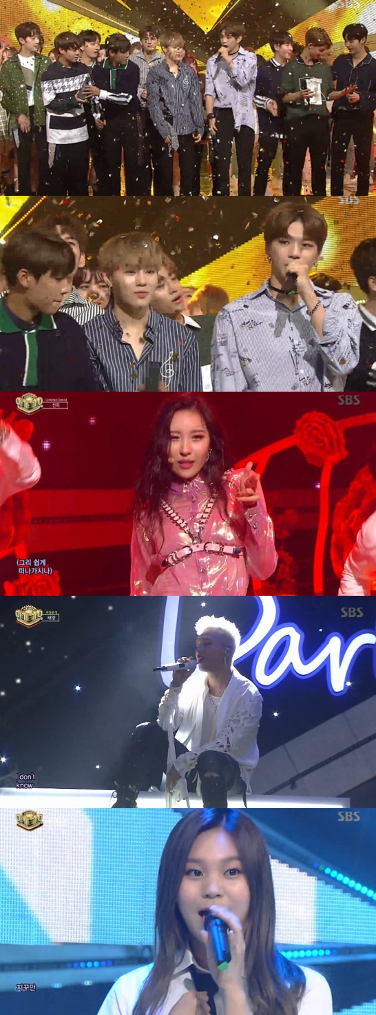 워너원은 27일 오후 방송된 SBS 가요 순위 프로그램 '인기가요'에서 1위를 차지했다.