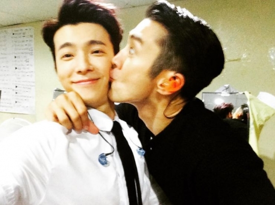 그룹 슈퍼주니어의 최시원이 동해의 볼에 뽀뽀를 하며 진한 우정을 과시했다.