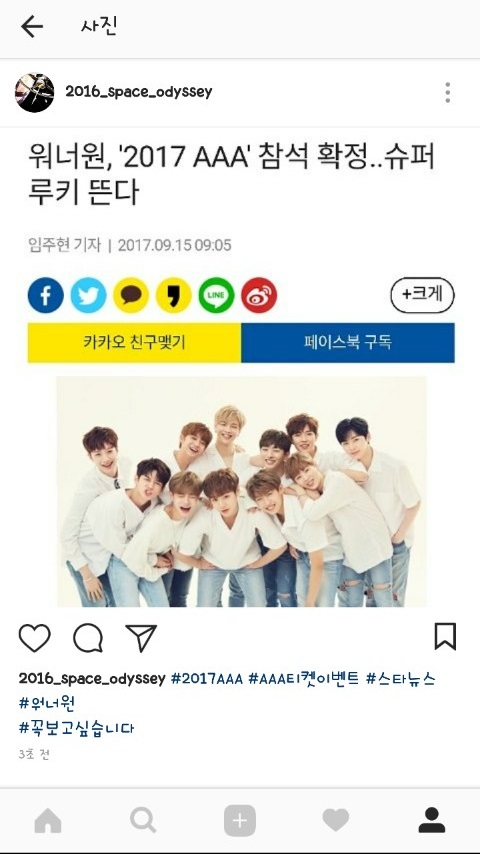③캡처한 사진에 태그로#2017AAA #AAA티켓이벤트 #스타뉴스 #좋아하는아티스트, ex)엑소..태그 걸기)