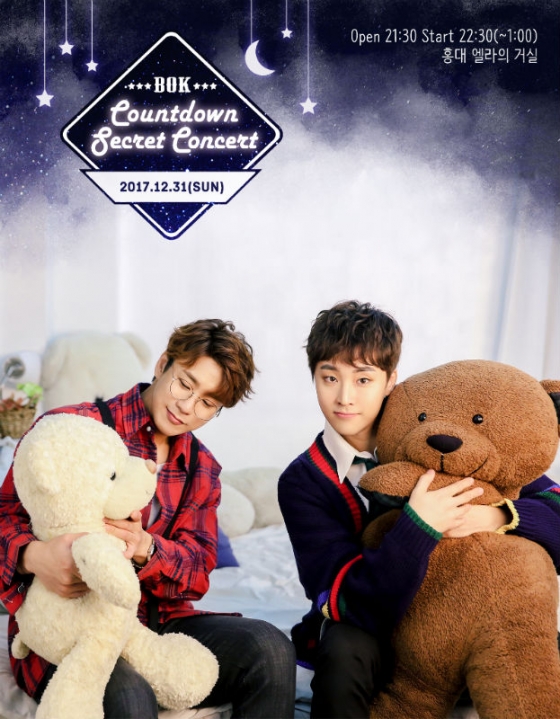2인조 남성 그룹 비오케이(BoK)가 오는 12월 31일 서울 마포구 상수동 엘라의 거실에서 연말 단독 콘서트 ‘Countdown Secret Concert’를 펼친다.