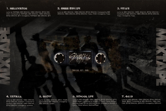 더불어 앨범 'Mixtape'의 트랙리스트도 공개됐다. 이번 앨범은 스트레이 키즈의 데뷔 과정을 담은 Mnet '스트레이 키즈'에서 멤버들이 각 단계별 미션을 거치며 선보인 자작곡 7트랙을 실었다. 첫 미션곡이자 타이틀곡 '헬리베이터(Hellevator)'를 비롯해 생방송 파이널 미션에서 공개한 'Grrr 총량의 법칙'과 '어린 날개', 신촌 버스킹 무대에서 선보인 'YAYAYA', 3:3:3 유닛 미션 곡들인 'GLOW'와 'School Life' 그리고 '4419'까지 스트레이 키즈는 프리 데뷔 앨범부터 전곡을 자작곡으로 채우며 향후 행보에 대한 기대감을 높였다.