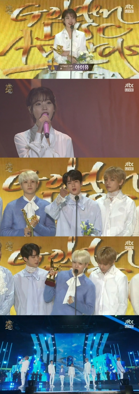 가수 아이유와 보이그룹 방탄소년단이 10일 오후 방송된 제32회 골든디스크 시상식에서 디지털 음원 부문 본상 수상자로 선정됐다.