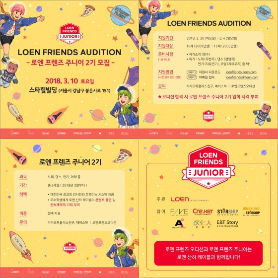 로엔의 청소년 대상 오디션 및 트레이닝 스쿨인 ‘로엔 프렌즈 주니어’는 국내 최대 음원사이트 멜론 등을 보유한 로엔이 주관하고, 로엔 소속 유명 기획사인 페이브(아이유, 지아, JBJ 등), 크래커(멜로디데이, 더보이즈 등), 스타쉽(케이윌, 소유, 우주소녀, 유승우 등), 킹콩 by 스타쉽(이동욱, 유연석, 이광수, 김지원 등), 플랜에이(에이핑크, 허각 등), 문화인(박정현, 신현희와김루트, 우효 등), E&T 스토리(김소현) 등이 한데 참여하는 명실상부 국내 최대 규모와 수준을 자랑하는 주니어 트레이닝 스쿨이다.