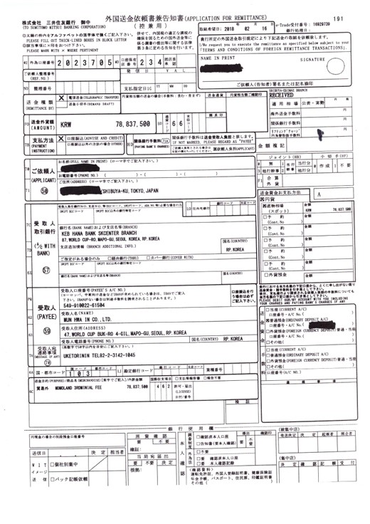 3번 이미지는 일본에서 보낸 입금 확인증 증빙 자료입니다.