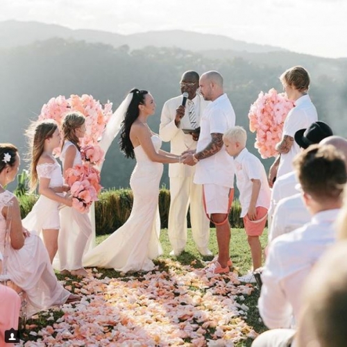 그의 아버지 제레미 비버와 새엄마 첼시 레벨로는 지난 19일 자메이카에서 결혼식을 올렸다. 모두 핑크색 반바지를 입고 편안한 분위기로 풀장에서 즐기는 자메이카풍 결혼식이었다.