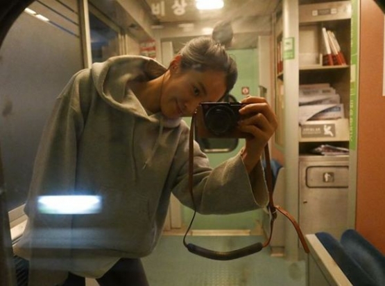 공개된 사진 속 유리는 기차 안에서 자신의 모습을 카메라에 담고 있다. 머리를 하나로 질끈 묶어 올리고 있어 그의 갸름한 턱선과 뚜렷한 이목구비가 돋보인다.