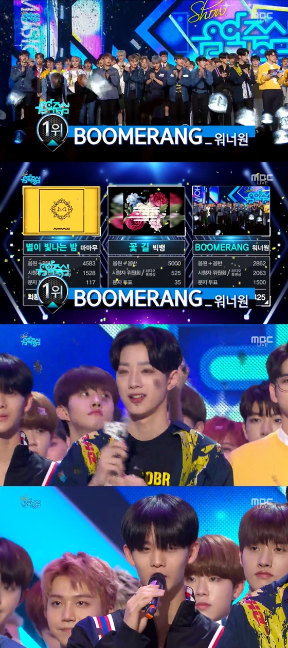 그룹 워너원이 '쇼! 음악중심'에서 1위를 차지했다.