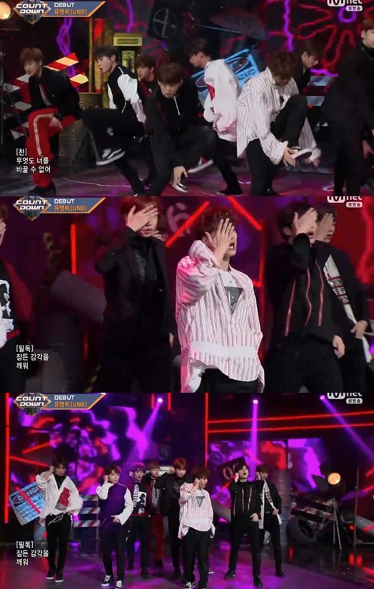 유앤비는 12일 오후 방송된 Mnet 음악 프로그램 '엠 카운트 다운'에서 데뷔 앨범 '보이후드'(BOYHOOD) 타이틀 곡 '감각' 무대를 선보였다.