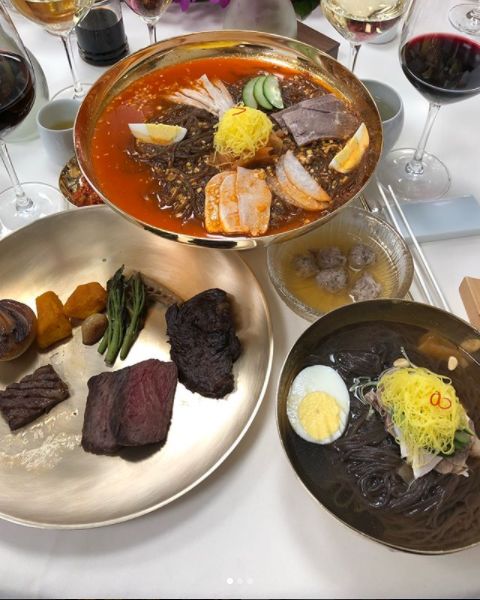 공개된 사진에는 남북정상회담 만찬에서 나온 평양냉면을 비롯해 현송월 북한 삼지연관현악단장, 조용필과의 인증샷이 담겼다. 특히 조용필이 현송월 단장의 어깨를 잡고 윤도현과 촬영한 쓰리샷이 시선을 집중시켰다.