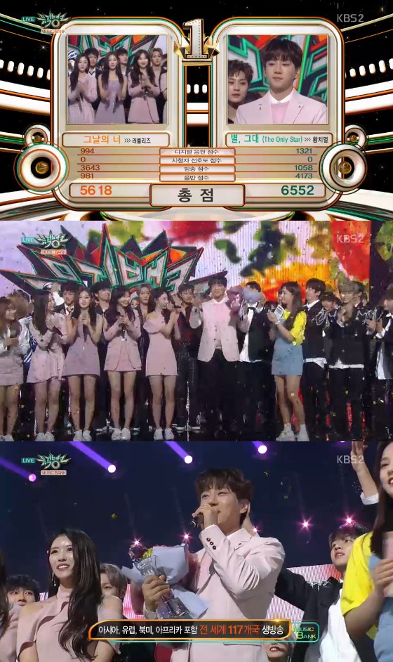 4일 방송된 KBS 2TV '뮤직뱅크'에서 신곡 '별, 그대'로 1위를 차지했다. 1위 후보로는 러블리즈와 황치열이 올랐다.