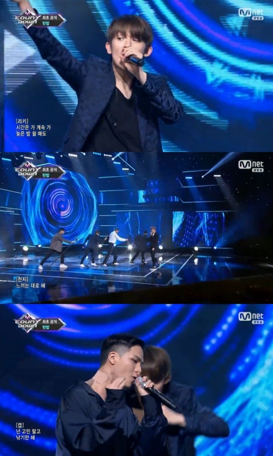 보이 그룹 틴탑(캡, 니엘, 리키, 창조, 천지)이 '엠 카운트 다운'에서 '놀면 돼(Let's Play)' 무대를 가졌다.