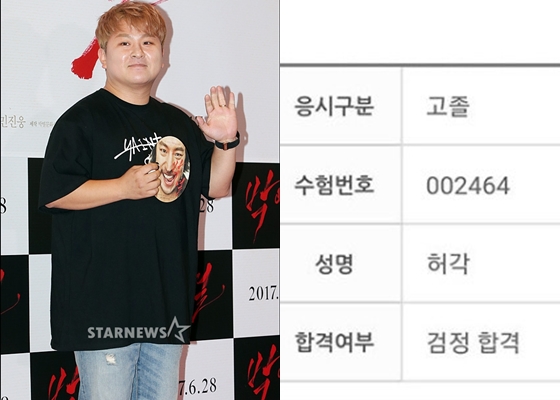 허각은 11일 오전 개인 SNS에 "경사났네. 저 이제 고졸입니다. 검정고시 합격했어요. 한국사 36점 죄송합니다"라는 글과 함께 합격 인증사진을 게재하며 이 같은 사실을 알렸다.