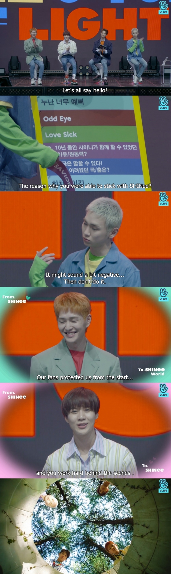 팬들은 샤이니에게 "10년 활동의 원동력은 무엇이냐"고 물었다. 이에 키는 "이유라고 한다면 이 단어가 부정적인 느낌을 줄 거라는 생각이 들지만 잘 버텼기 때문이라고 대답하고 싶다"며 운을 뗐다.