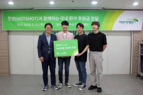 1일 소속사 스타크루이엔티에 따르면 핫샷의 멤버 최준혁, 김티모테오, 윤산이 지난달 31일 초록우산어린이재단에 환아 의료비 지원을 위해 후원금을 전달했다.