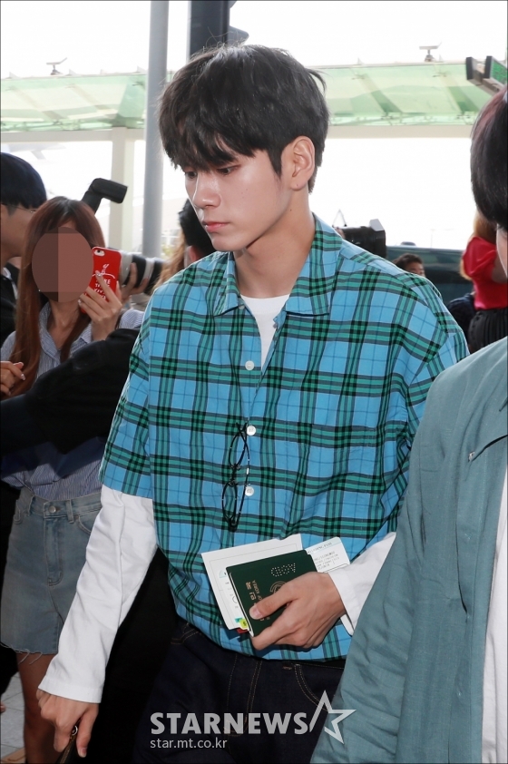 그룹 워너원 옹성우가 월드투어와 KCON 무대를 위해 20일 오후 인천국제공항을 통해 미국으로 출국하고 있다.
