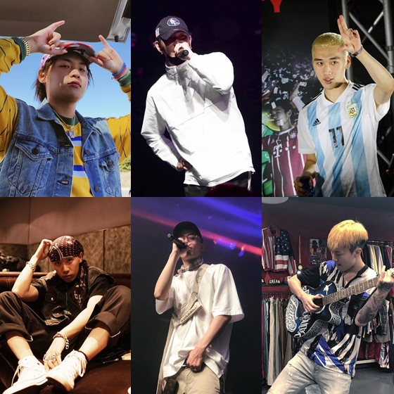 래퍼 슈퍼비 블랙나인 김효은 윤병호 루피 나플라(왼쪽부터 시계방향)/사진=인스타그램 캡처
