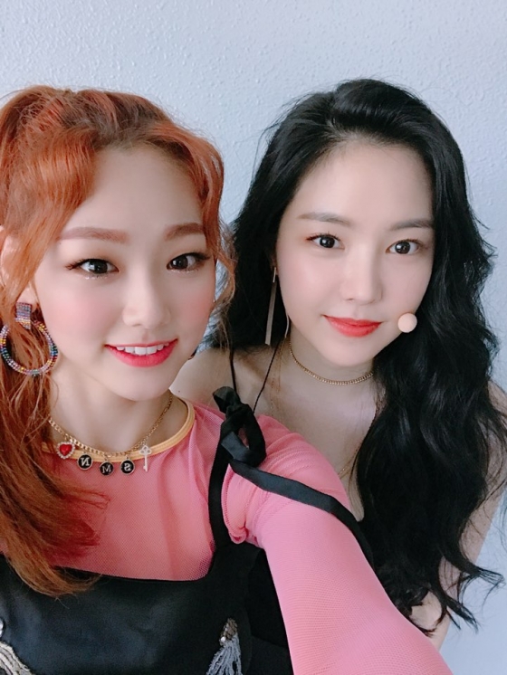 걸그룹 구구단 세미나의 미나가 에이핑크 손나은과 함께한 대기실 셀카를 공개해 눈길을 끈다.