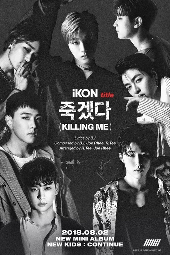 26일 YG엔터테인먼트는 오는 8월 2일 발표할 아이콘의 새 미니앨범의 타이틀 곡명이 담긴 '죽겠다(Killing Me)'의 포스터를 공개했다. 좀더 강렬하게 감정을 표현할 때 일상적인 대화에서 흔히 주고받는 말인 '죽겠다'는 곡명이 눈길을 확 끌어당긴다.