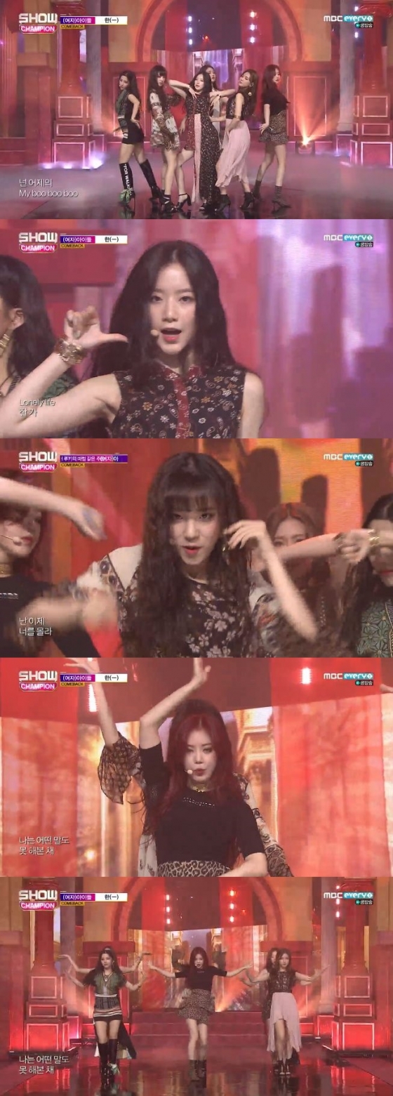 22일 오후 방송된 MBC 에브리원 '쇼챔피언'에서 (여자)아이들이 신곡 '한(一)'으로 강렬한 무대를 꾸몄다.