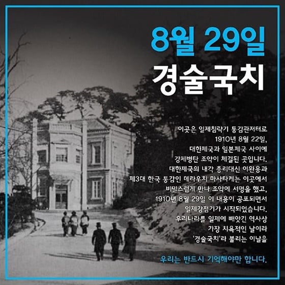 공개된 사진에는 경술국치에 대한 설명이 담겨져 있다. 이를 접한 다수의 네티즌들은 "멋있어요", "기억하겠습니다", "한 번 더 알고 갑니다. 감사합니다", "안타까운 우리의 역사인데 너무 모르고 지나는 게 슬프네요" 등과 같은 반응을 보였다.