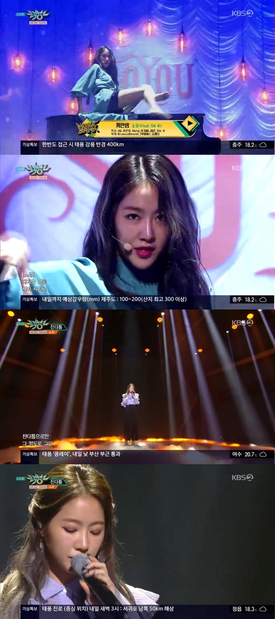 '뮤직뱅크'에서 가수 소유가 곡 '까만밤'으로 컴백했다.