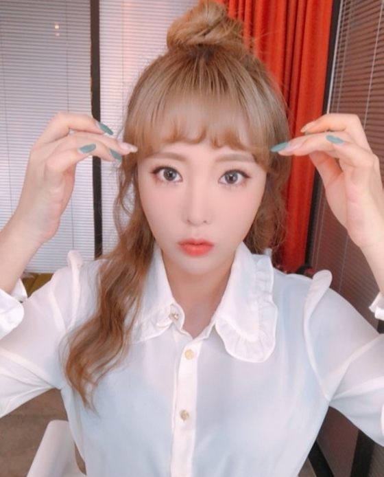 홍진영은 8일 자신의 인스타그램에 "오늘은 반 묶음 올림머리. 영화 포청천 같은 느낌"이라는 글과 함께 사진을 게재했다.