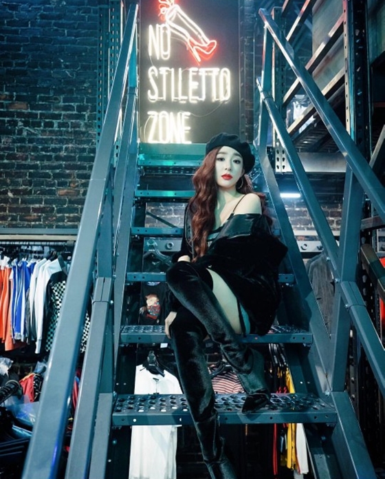 사진 속 티파니는 계단에 앉아서 자세를 취했다. 한쪽 어깨를 드러내며 풍기는 섹시한 매력으로 시선을 끌었다.