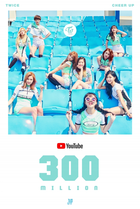 5일 소속사 JYP엔터테인먼트에 따르면 지난 2016년 4월 25일 공개된 트와이스 '치어 업' 뮤직비디오는 지난 4일 오후 5시 52분 기준 3억 뷰를 넘어섰다.
