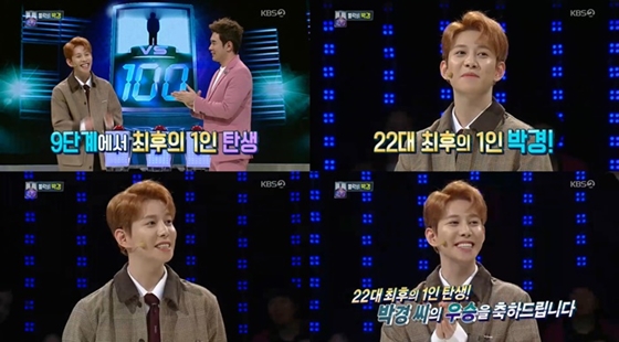 그룹 블락비의 박경이 '1대 100'에서 최후의 1인을 차지하며 아이돌 대표 '뇌섹남'의 이름값을 입증했다.