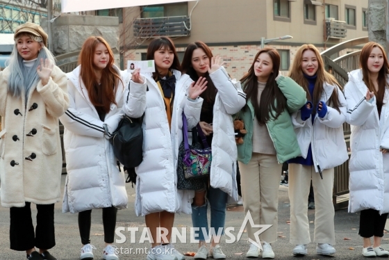 그룹 모모랜드 아인이 15일 오전 서울 구로구 고척고등학교에 2019학년도 대학수학능력시험을 치르는 위해 도착해 멤버들의 응원을 받고 있다.올해 수능은 지난해 보다 1397명이 증가한 59만4924명이 응시한 가운데 전국 86개 시험지구 1190개 시험장에서 일제히 치러진다.